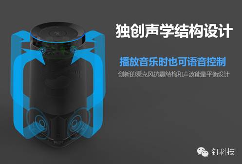 据悉,为了能够使音箱在播放状态下,依旧能够准确识别用户的唤醒指令。DingDong智能音箱在声学结构上进行了精心的设计,当音乐所发出的音量大于90dB的时候,会导致整个音箱的本体产生振动,为了防止这种振动对用户语音识别产生干扰,DingDong智能音箱进行了特有的麦克风设计,以及与声波能量平衡的设计。