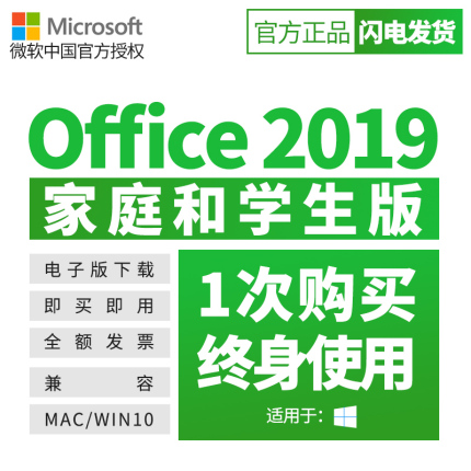 永久授权:微软 Office 2019 家庭和学生版限时 3 折
