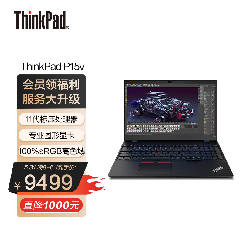 京东联想笔记本电脑 ThinkPad P15v (2DCD) 15.6 英寸高性能设计师工作站 i7-11800H 16G 512G T600 高色域 9499 元直达链接