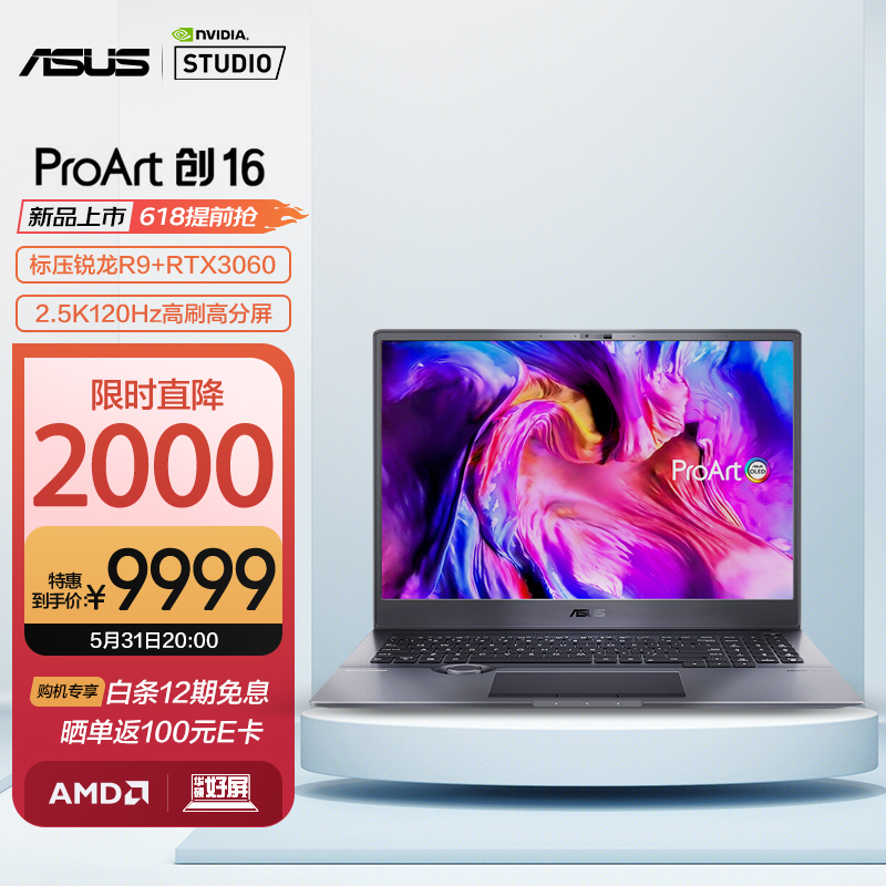 华硕 ProArt 创 16 是一款专门为创意工作者打造的高性能创造本,集高性能、创意旋钮、专业创作屏幕于一体,临近 618,这款产品(R9-5900HX 16G 512G RTX3060 2.5K 120Hz)目前迎来限时优惠,直降 2000 元,仅售 9999 元。