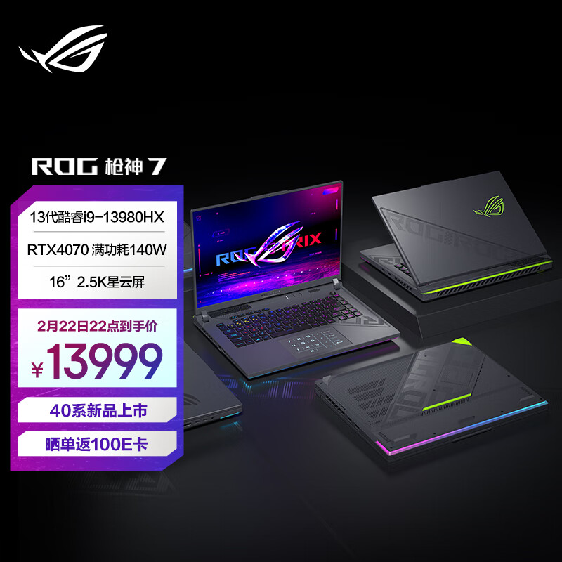 京东 ROG 枪神 7 第 13代酷睿 i9 16 英寸 星云屏 电竞游戏本笔记本电脑 (i9-13980HX 液金导热 16G 1T RTX4060 240Hz)10999 元直达链接16 英寸 ROG 星云屏 i9-13980HX 液金导热 16G 1T RTX4070 首发价:13999 元