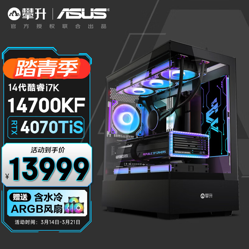 京东攀升&华硕 战神 RS 台式电脑游戏台式机水冷主机全套(14 代酷睿 i7K RTX4070TiS 32GD5 1TB)13999 元直达链接攀升商睿 3