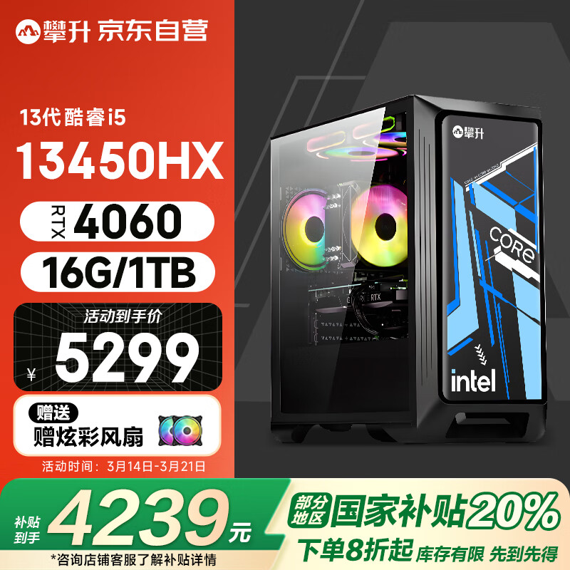 京东攀升 战神 2 台式电脑游戏台式机电脑主机全套整机(13 代酷睿 i5 RTX4060 8G 显卡 16G 1TB)国家补贴 20%5299 元直达链接攀升战神 GT