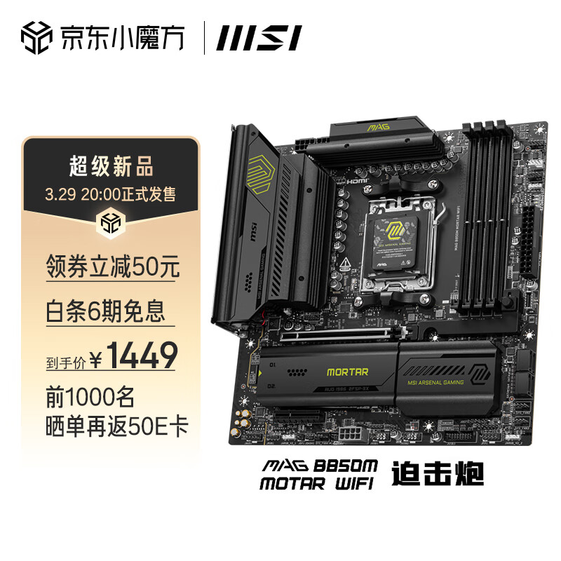 IT之家 3 月 29 日消息,微星本月初公布的新一代“迫击炮”主板 MAG B850M MORTAR WIFI 将于今晚20 时正式开售,零售价 1499 元,首发到手价 1449 元。